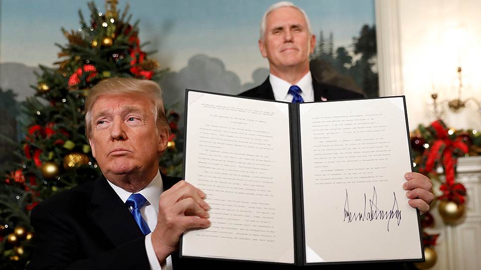 В свою очередь, советник Махмуда Аббаса по стратегическим вопросам и официальный представитель Организации освобождения Палестины в Вашингтоне Хусам Зомлот заявил, что признание Иерусалима столицей Израиля станет «поцелуем смерти» и «частью (ближневосточной.— “Ъ”) проблемы, а не частью решения».