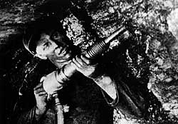 | Для шахтеров 30-х стандартным орудием было кайло, однако Стаханов с первого взгляда привязался к отбойному молотку |
