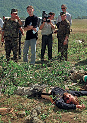 Его коллеге Родерику Джону Скотту повезло меньше. После многонедельного пребывания в отряде Руслана Гелаева в Грузии Скотт вместе с боевиками отправился через границу в Осетию, а оттуда в Ингушетию. Если бы он вернулся домой, в Великобританию, собранный им материал стал бы самым ярким эксклюзивом за последние годы, потому что полевой командир Гелаев пока известен только как легенда чеченского сопротивления, живьем его давно никто не видел. Но стрингер Скотт не вернулся: его застрелил снайпер под ингушским селением Галашки. Говорят, что у Скотта была разбита камера и пуля пробила глаз. То есть в момент боя он снимал происходящее. Это, однако, не помешало ингушским властям назвать стрингера террористом, после чего администрация президента Зязикова отказала в захоронении Скотта на территории Ингушетии. Родные и друзья журналиста не решились ехать за его телом, ведь опасные поездки на Кавказ — это удел стрингеров, но не простых смертных. Со дня смерти Джона Родерика Скотта прошли уже два месяца, а тело его до сих пор не предано земле. Известный среди своих коллег как "матерый волк", он оказался никому не нужным после своей смерти.