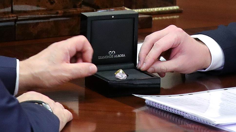 Глава АЛРОСА Сергей Иванов на встрече с президентом России Владимиром Путиным показал два самых дорогих в истории российской и советской алмазодобычи камня: желтый и розовый алмазы в 28 карат. Он объяснил, что это уникальные для драгоценных камней цвета, и они очень ценятся на аукционах.