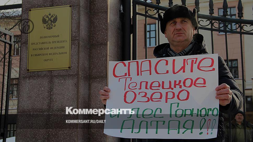 Вчера в Новосибирске у ворот здания полпредства президента России прошел одиночный пикет против вырубки леса у Телецкого озера. С плакатом «Спасите Телецкое озеро и лес Горного Алтая» вышел житель Турочакского района Республики Алтай Владимир Швецов. С ним приехали еще шесть членов инициативной группы из Турочакского и Чойского районов, где осенью прошлого года активно велась рубка леса. Алтайцы возмущены тем, что лес пилят рядом с туристической зоной. Они считают, что это стало возможным из-за «дыр» в законодательстве. По словам жительницы Турочакского района Республики Алтай Ольги Коноревой, сельхозпроизводители получают участки леса под видом того, что хотят разбить на их месте пашни. На самом деле их цель — пилить деревья, считает госпожа Конорева. Так, в Чойском районе фирма «Агроснаб», по ее словам, получила 20 тыс. га бывших сельхозугодий, на которых растет лес, и «Агроснаб» его рубит. Получить комментарий у компании на момент подготовки материала „Ъ“ не удалось. В Турочакском районе подобных площадей больше, и все они принадлежат разным людям.