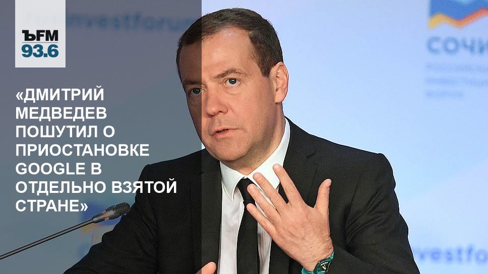 Не обошлось, кстати, и без курьезов на этой дискуссии. Гендиректор биотехнологической компании BIOCAD Дмитрий Морозов говорил о защите отечественного рынка от зарубежных конкурентов, о развитии отечественного бизнеса, и, видимо в шутку, предложил приостановить деятельность Google в России для того, чтобы «Яндекс» «отрос». Дмитрий Медведев заявил, процитирую: «Приостановить Google можно, но только в отдельно взятой стране», — видимо, тоже имел в виду Россию, но дальше шутки, я так понимаю, дел не пошло.