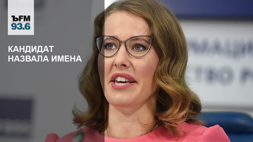На пресс-конференции Собчак заявила, что добровольно раскрывает имена своих спонсоров, хотя по закону делать это необязательно. Политолог Вячеслав Смирнов предполагает, что этот ход рассчитан не на расширение электоральной базы, а на поиск дополнительной финансовой поддержки:
