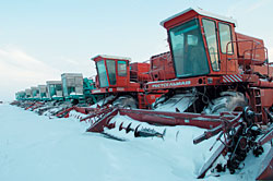 | Вся зерноуборочная техника хранится в редком для русского глаза порядке |