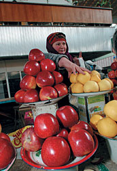Но есть неофициальный брэнд, известный всем, кто когда-нибудь посещал Казахстан. Большое яблоко сорта "Алма-атинский апорт" — это все, что имеет смысл везти из Казахстана. Его можно считать эталоном яблока. Местные жители говорят, что яблоки измельчали. Но это, конечно, ерунда. Пойдите на базар и увидите, что алма-атинские яблоки все так же прекрасны и неповторимы.