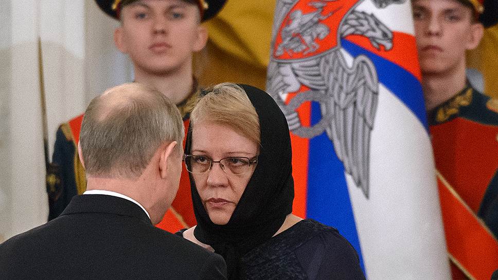 Президент России Владимир Путин и мать погибшего в Сирии летчика Романа Филипова Елена