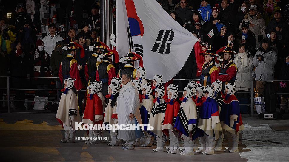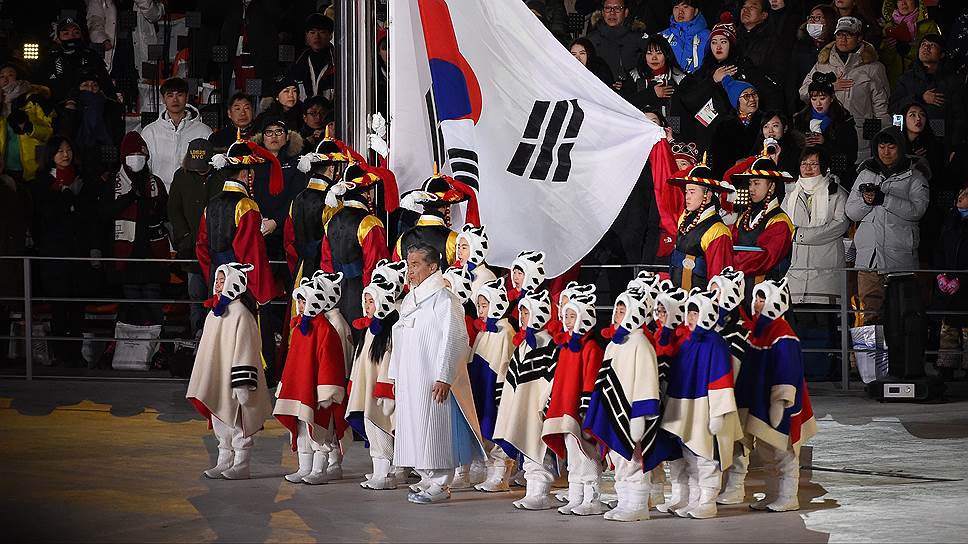 Флаг Южной Кореи вынесли дети-волонтеры