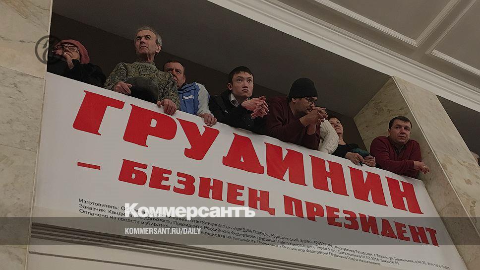 За пять дней до президентских выборов Казань посетил кандидат КПРФ, беспартийный директор ЗАО «Совхоз имени Ленина» Павел Грудинин. Изначально планировалось, что он встретится с избирателями в культурно-развлекательном комплексе «Пирамида», однако, по словам коммунистов, руководство комплекса вдвое завысило стоимость аренды. В итоге договор на проведение агитационного мероприятия был заключен с Дворцом культуры имени Ленина в Авиастроительном районе Казани. Вчера за час до начала встречи перед ДК развернули пикет «Коммунисты России». Несколько десятков оппонентов КПРФ пришли с плакатами: «Олигарх Грудинин, хватит прикрываться Лениным», «В Татарстане за болтунов не голосуют», «Павел Грудинин — как редиска: снаружи красный, внутри белый».
