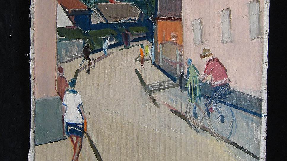 Полотна чаще огромного размера, с широкими цветовыми полосами. Названия тоже отвлеченные — «Лицом на Восток» (так и весь проект называется), «Стена светло-голубого Черного моря», «Арль-Вечер-Винсент 2».