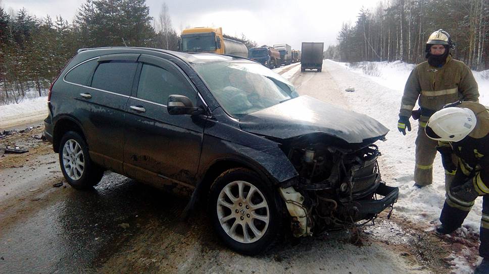 Авария произошла в пятницу в 12:10 на 50 км автодороги Владимир—Гусь-Хрустальный—Тума. По предварительной информации, водитель кроссовера Honda CR-V выехал на встречную полосу, где врезался в КамАЗ и микроавтобус Volkswagen.