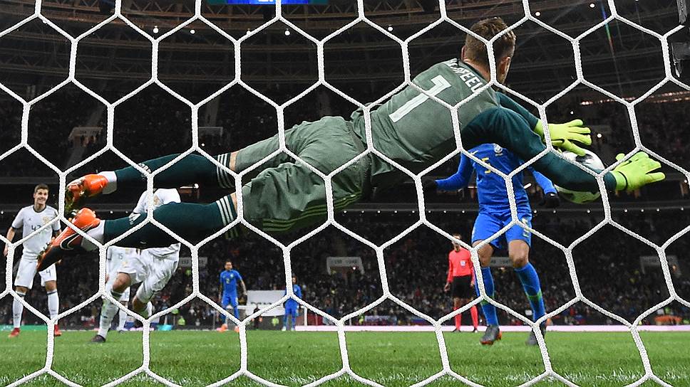 Основные же события в этом матче произошли уже после перерыва, когда россияне попробовали поиграть с бразильцами в более открытый футбол и сразу же за это поплатились. Как ни старался Игорь Акинфеев, спасавший свою команду после ударов Филиппе Коутинью и Паулинью, а также рикошета от ноги Александра Самедова, на 53-й минуте бразильцы все-таки открыли счет. Сделал это не выделявшийся ранее активностью у чужих ворот защитник Миранда, сыгравший на добивание.