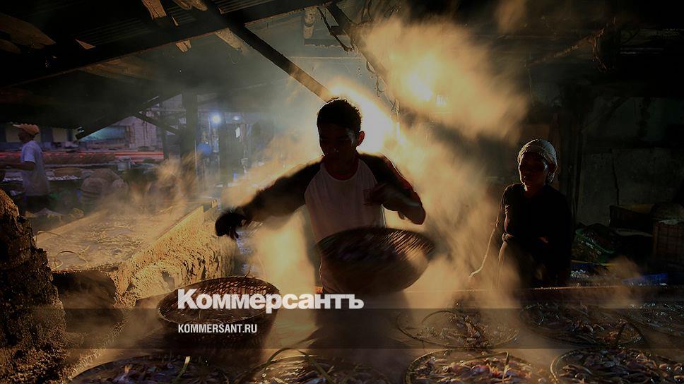 Джакарта, Индонезия. Рабочий маринует рыбу