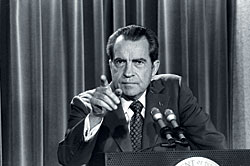 Но вершиной деятельности журналистов-"грязекопателей" стал "Уотергейт", в 1973 году потрясший всю вертикаль американской власти по самую маковку. Если бы не поразительная упертость двух сотрудников газеты The Washington Post — Боба Вудворда и Карла Бернстейна, которые с тех пор превратились в легенду, администрации Никсона, скорее всего, удалось бы замять скандал, связанный с проникновением агентов Белого дома в предвыборный штаб демократической партии в 1972 году. Во всяком случае, на это были брошены все имевшиеся в наличии силы. В печать просочились тщательно разработанные cover stories ("легенды прикрытия" — версии, отвлекающие внимание от истинной подоплеки инцидента), сотрудники Никсона нажали на все доступные им кнопки влияния, а самих Вудворда и Бернстейна подвергли разнообразному давлению: от попыток подкупа до организации компромата и угроз физического устранения. Любопытно, что руководство конкурирующей газеты The New York Times, в распоряжении которой также оказались компрометирующие президента материалы, в отличие от столичных коллег (см. "Деньги" ## 31 и 64, 2001 год) поддалось прямому нажиму Белого дома. Опубликованная в 1974 году книга Вудворда и Бернстейна "Вся президентская рать" принесла авторам славу и премии (став, естественно, бестселлером), а американскому обществу вернуло веру в то, что законы писаны и для президентов.
