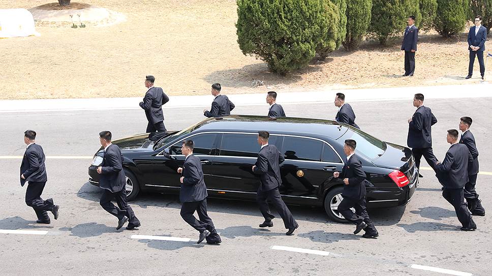 На фото: охранники Ким Чен Ына сопровождают его автомобиль