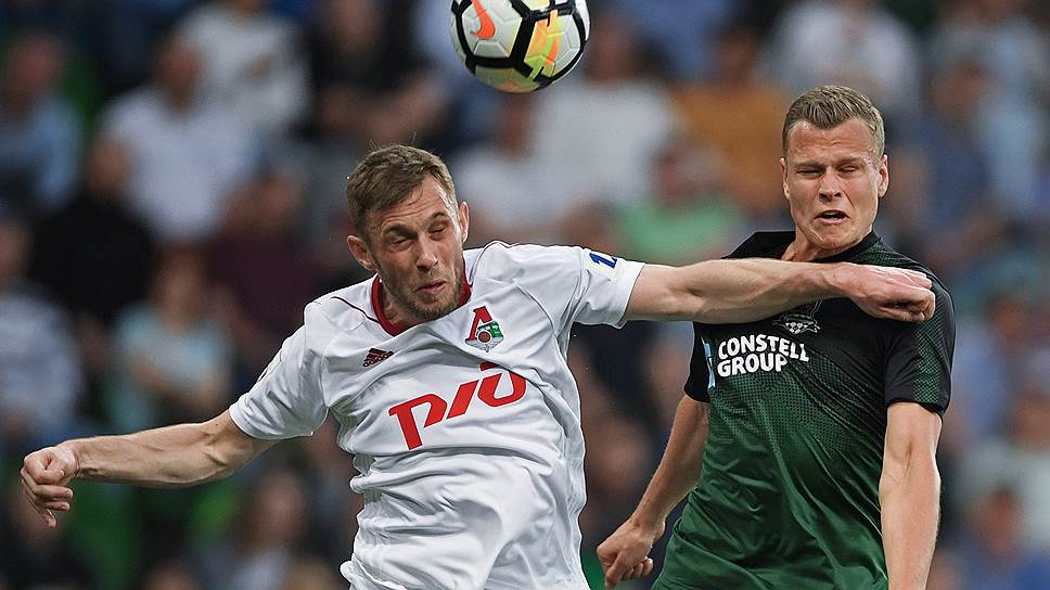 Футболисты «Локомотива» Мацей Рыбусь (слева) и «Краснодара» Алексей Филиппов