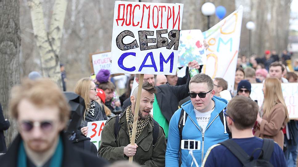 «Монстрация» — массовое шествие, участники которого выходят с абсурдными лозунгами. В Екатеринбурге акция прошла в пятый раз.