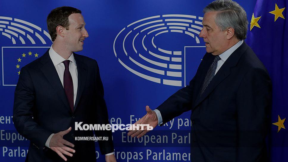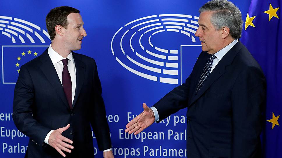 Глава Facebook Марк Цукерберг (слева) и глава Европарламента Антонио Таяни