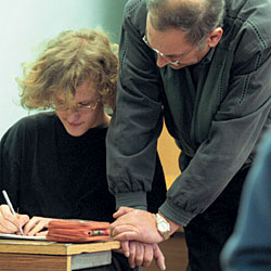 Во время учебы "интернетчиков" связь ученика с преподавателями и администрацией поддерживается в основном через e-mail. Впрочем, можно позвонить и получить консультацию по телефону или договориться о двух-трех очных занятиях по предмету (они изначально заложены в программу обучения). Уровень усвоения знаний проверяют с помощью тестов и письменных работ, которые интернет-ученики выполняют постоянно. Оценив работу, учитель может дать рекомендацию, над чем школьнику нужно дополнительно поработать. Подробный разбор полетов интернет-экстерн получает все по тому же e-mail. Кроме того, проводятся интернет-конференции в режиме on-line. На них разбираются сложные места программы и снимаются все возникшие в ходе самостоятельной работы над предметом вопросы. А вот сдать экзамены по интернету не получится, для этого все-таки придется приехать в школу.