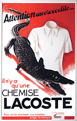 Действительно, Лакост проиграл в том матче. "Юный Лакост так и не получил вожделенный саквояж из крокодиловой кожи, но дрался он не хуже крокодила",— написал о поединке один бостонский журналист. Чуть позже один из друзей Лакоста, художник, подарил ему картинку — крокодил с победно поднятым хвостом и разинутой пастью. Лакосту так понравился этот "портрет", что он потребовал вышить его на своем пиджаке. Так изображение крокодила стало личной эмблемой Лакоста. А позже — символом марки Lacoste. В истории моды это был первый случай, когда торговый ярлык размещался не на изнанке, а на лицевой стороне одежды.