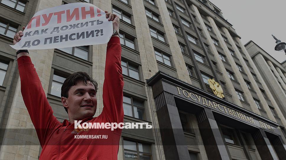 Депутаты от КПРФ, представители движения «Левый фронт», партии «Яблоко» и «Коммунисты России» провели у здания Госдумы акцию против повышения пенсионного возраста. Сегодня, 19 июля, нижняя палата парламента рассматривает законопроект о пенсионной реформе.