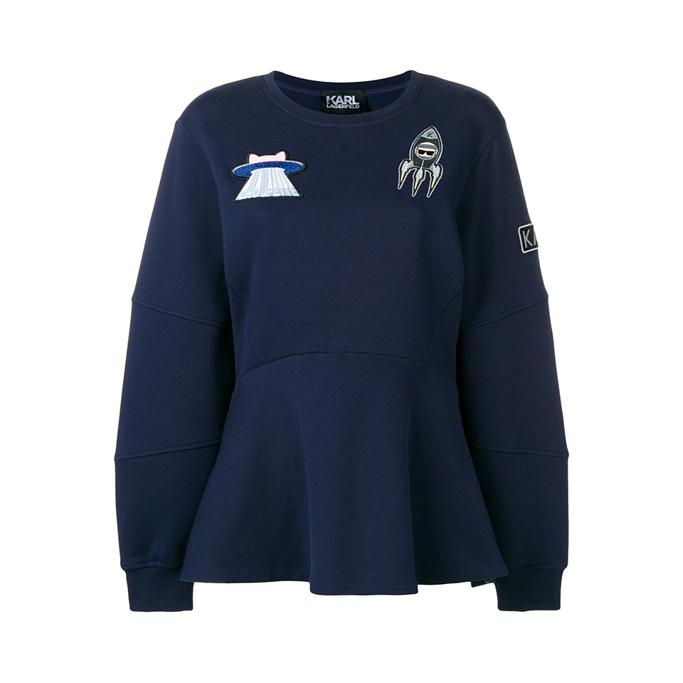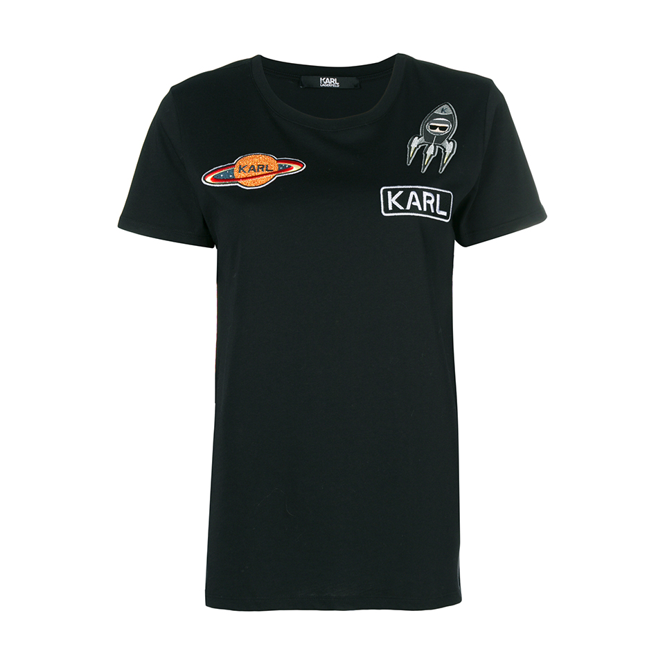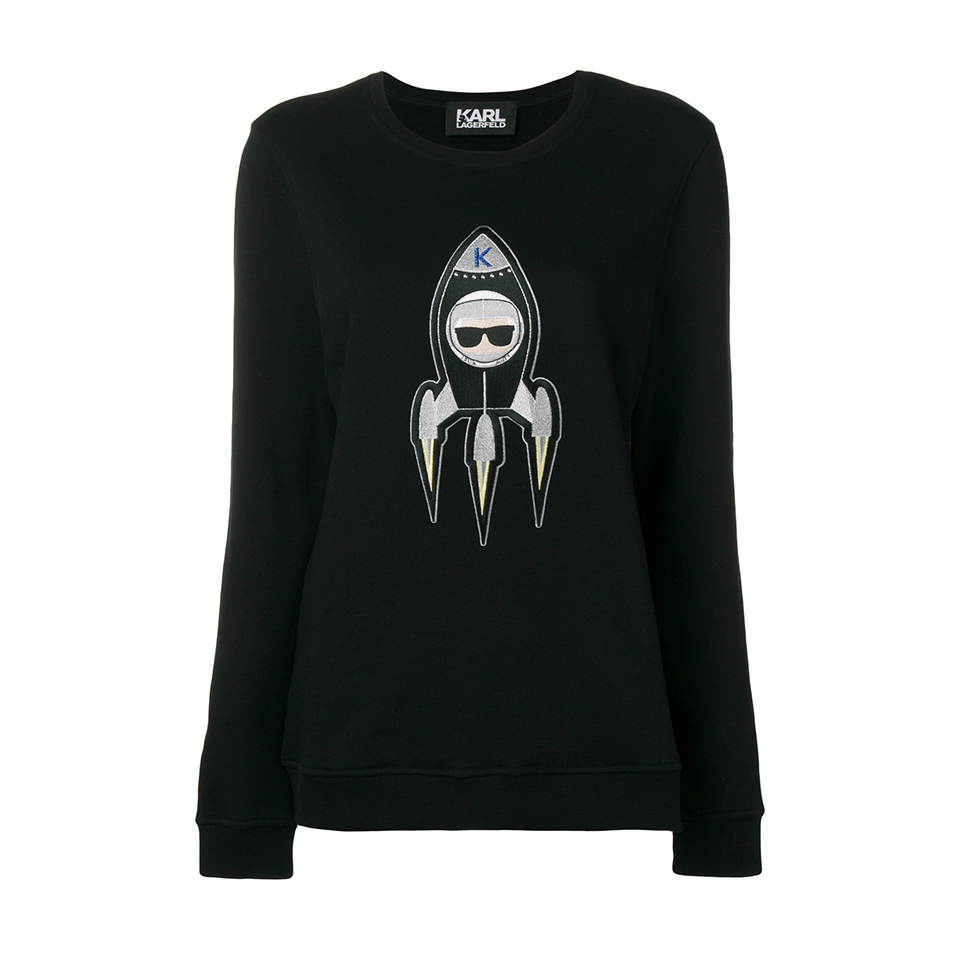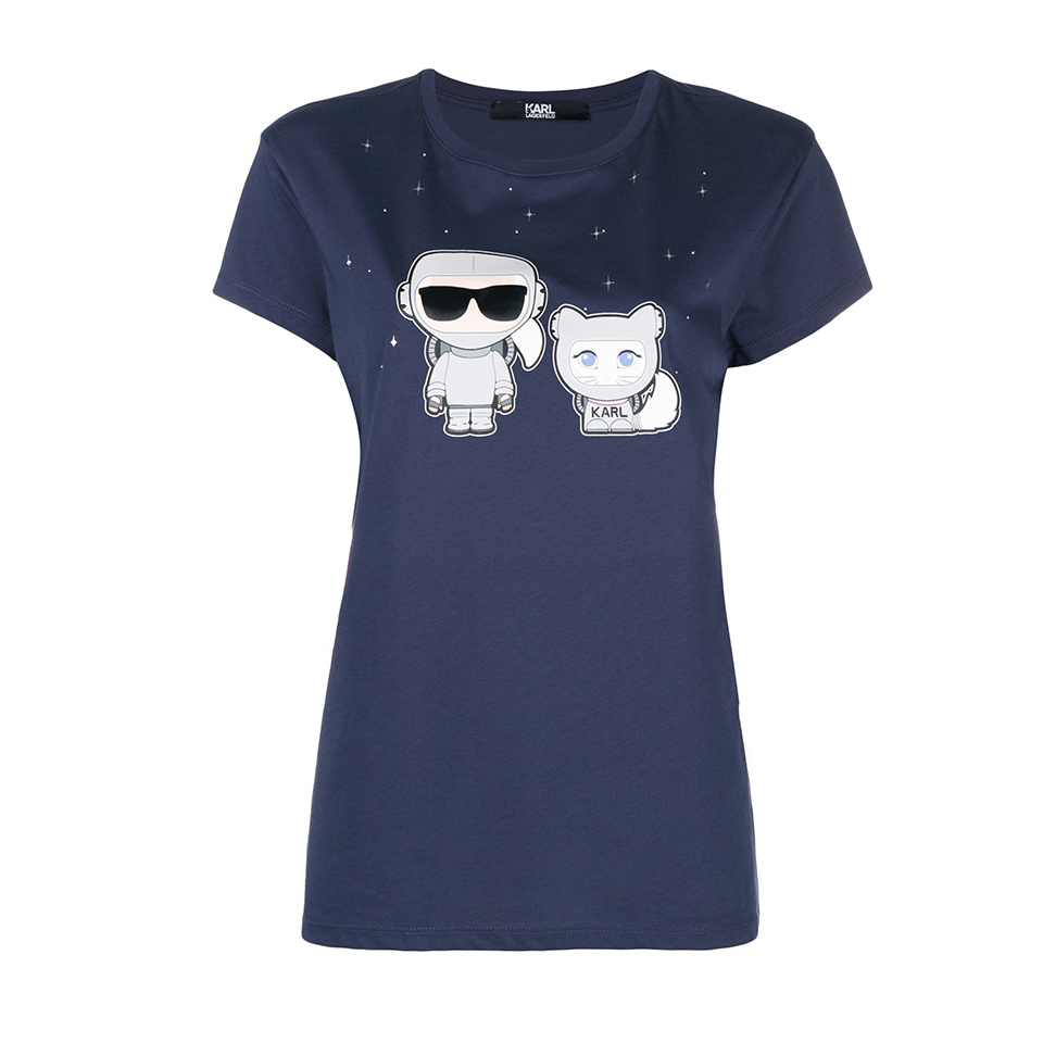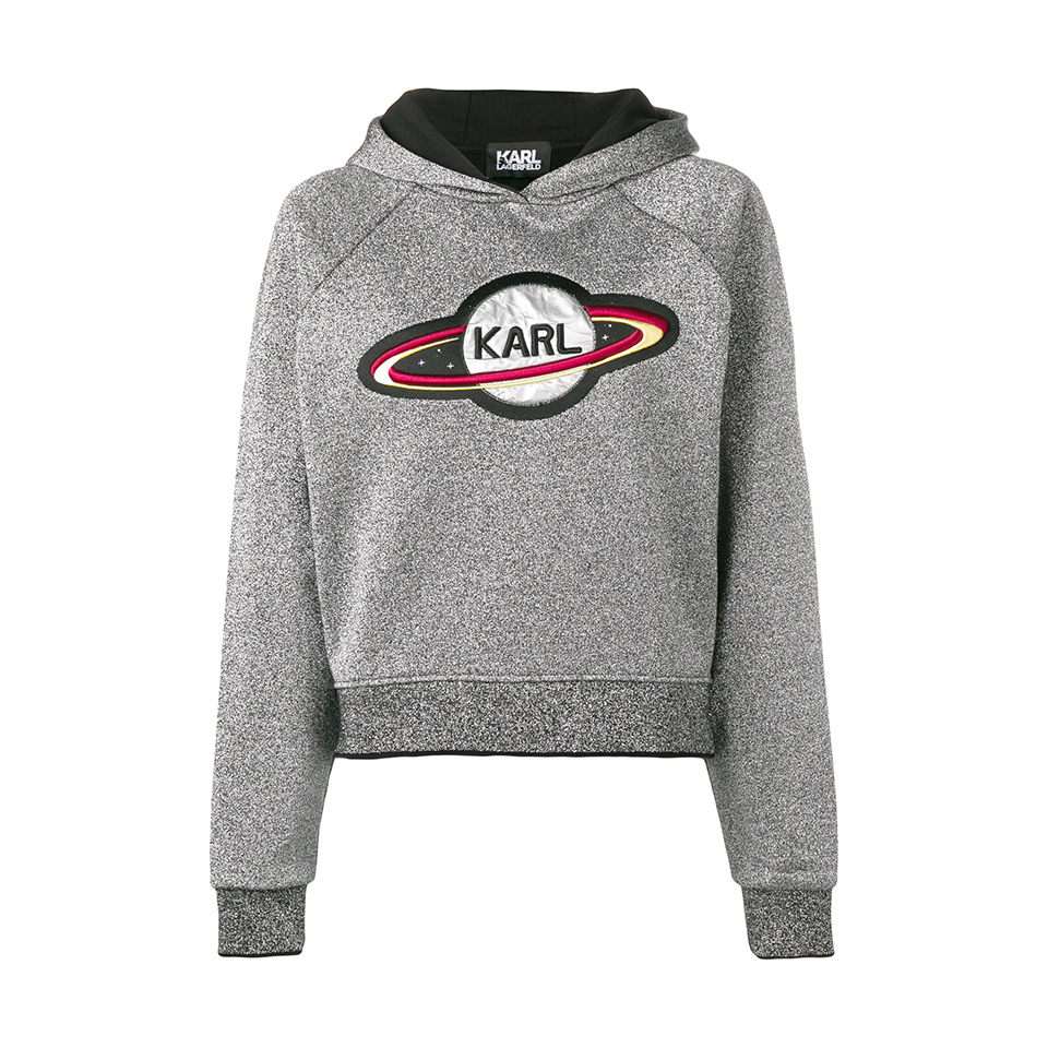 Бренд Karl Lagerfeld представил осенне-зимнюю капсульную коллекцию Karl In Space. Название подсказывает, что источником вдохновения для основателя марки — Карла Лагерфельда — на этот раз стал космос. Все изделия коллекции украшают принты в виде планет и ракет, а также изображения самого Карла и его кошки Шупетт в скафандре. В капсулу вошли: футболки, худи, джинсы, свитшоты, платья и юбки, твидовые пиджаки и шорты из специально созданной для этой коллекции блестящей ткани букле, блеск которой напоминает звездную пыль. Неизменно каждую деталь капсулы украшают крупные белые буквы логотипа марки.