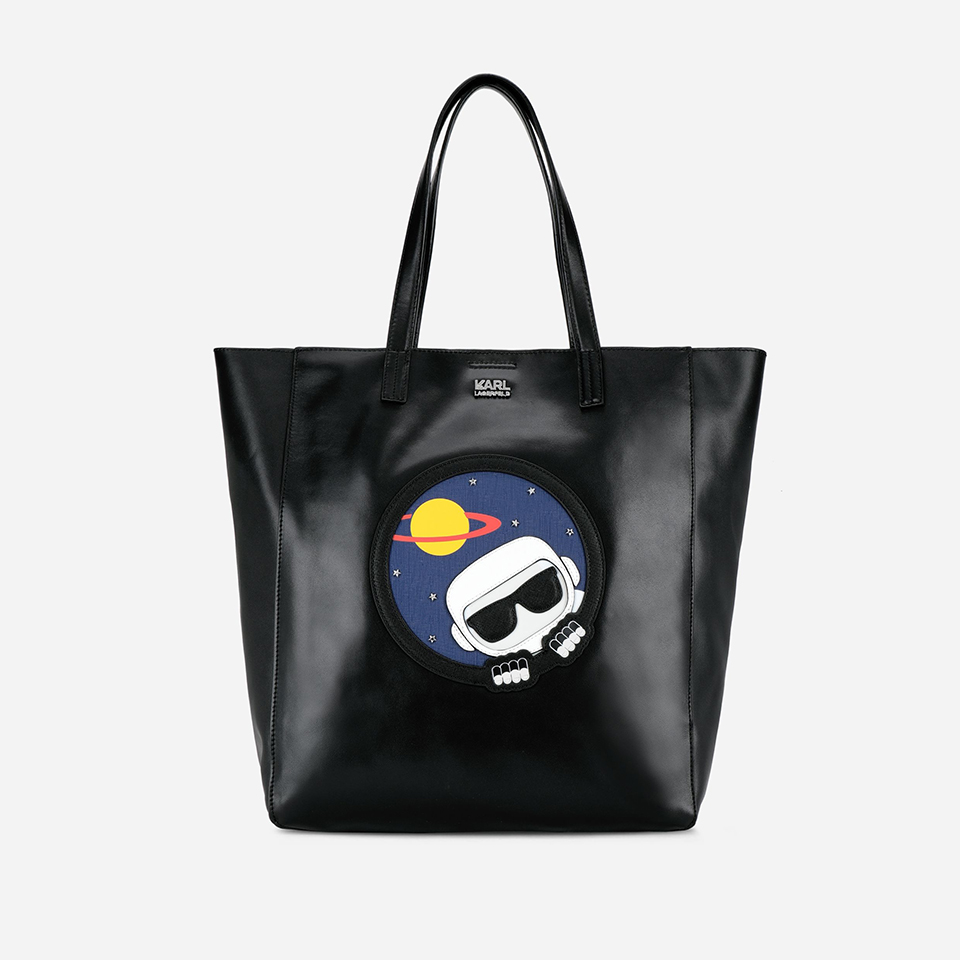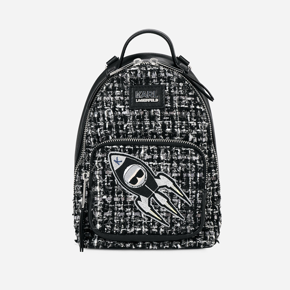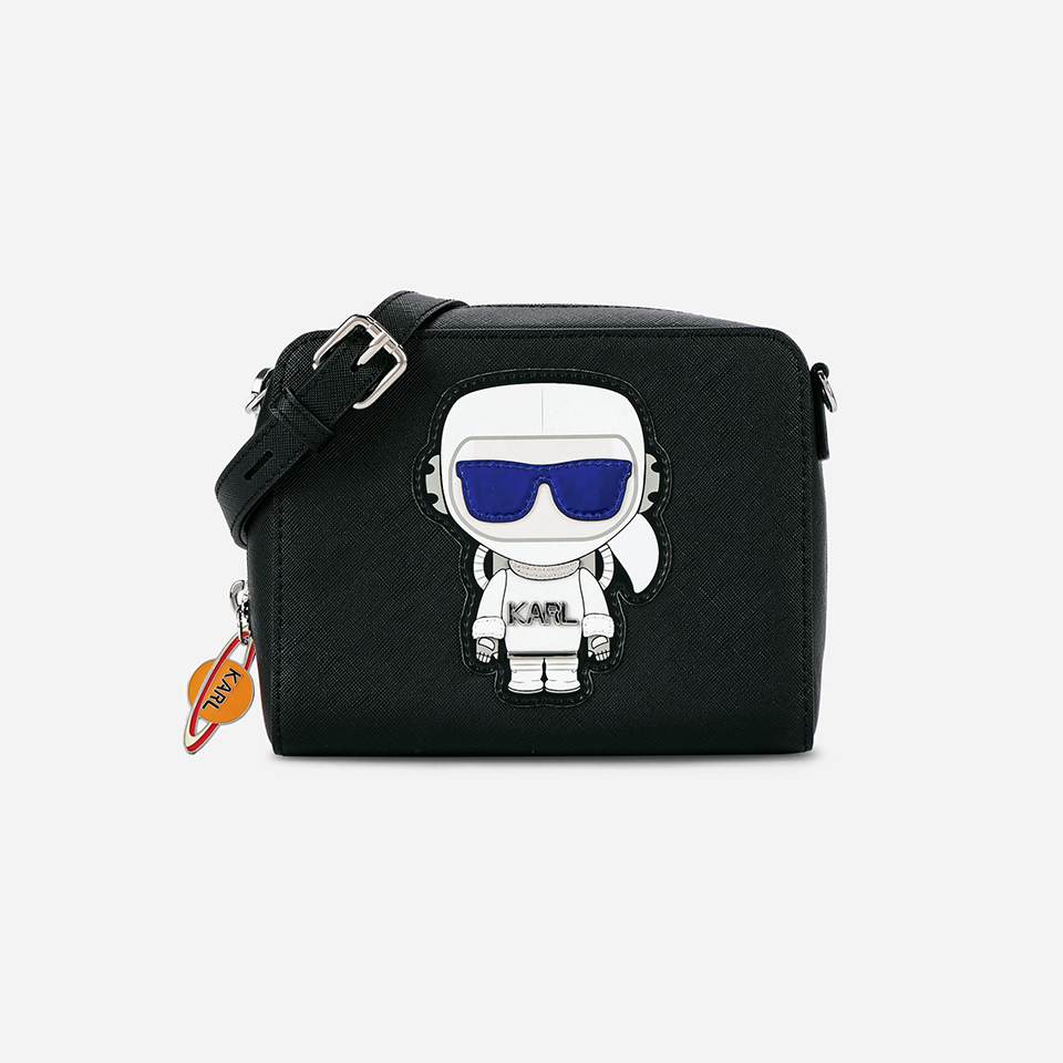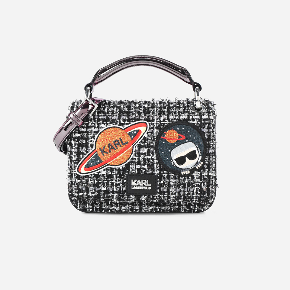 Не менее яркой стала и линия аксессуаров Karl In Space. Здесь представлены: рюкзак, твидовая сумка через плечо, сумка-шоппер, а также сумка кросс-боди, которую можно носить и как маленький кошелек, и как дополнение к сумке на молнии.