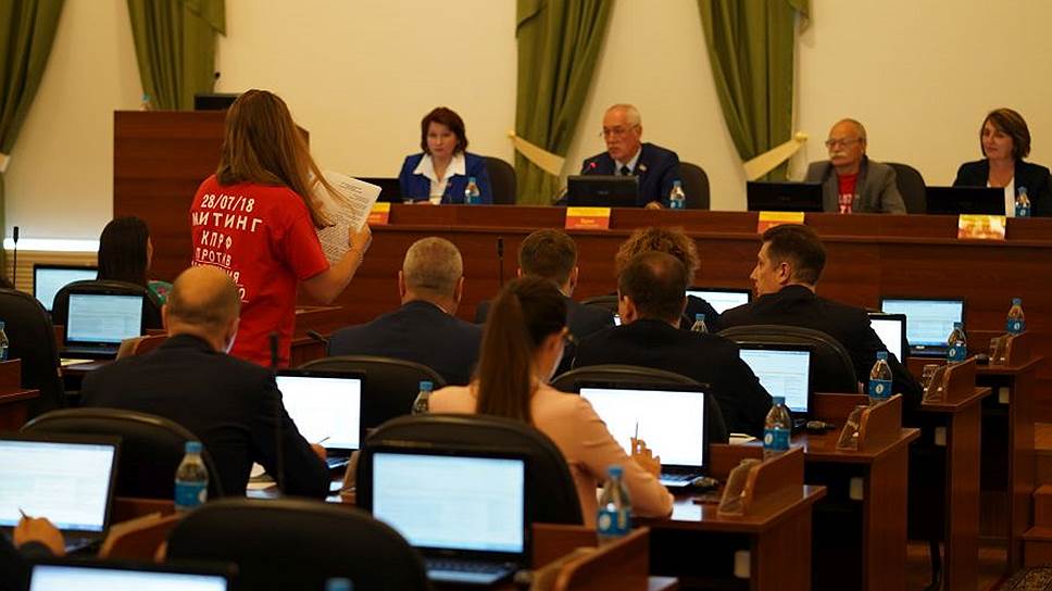 10 июля заксобрание Приморского края на внеочередном заседании поддержало правительственный законопроект о повышении пенсионного возраста. «За» проголосовал 21 депутат, против 8 (9 законодателей отсутствовали). О проведении внеочередного заседания депутатам сообщили накануне вечером, само оно проходило в закрытом для прессы режиме, не велась и традиционная трансляция сессии на сайте заксобрания. На заседании присутствовал врио губернатора Андрей Тарасенко, призвавший депутатов поддержать законопроект. «Мы голосовали, исходя из соображений партийной дисциплины. Федеральное руководство партии и глава края свою позицию озвучили, мы ее поддержали»,— объяснил “Ъ” позицию коллег по фракции единоросс Геннадий Лазарев.