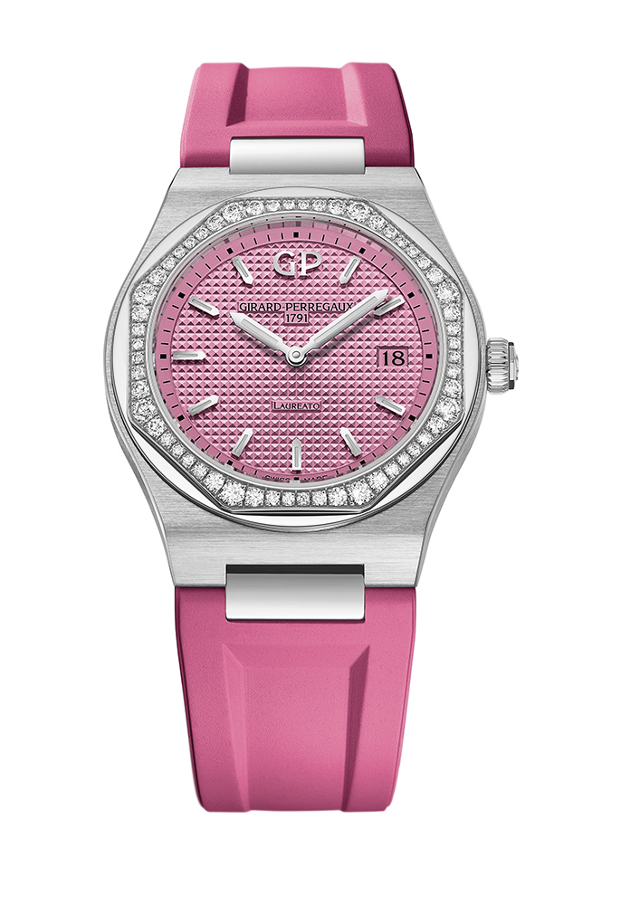 Часовой бренд Girard-Perregaux представил коллекцию часов Laureato в летнем варианте. Теперь обновленные модели окрашены в яркие цвета в стиле поп-арт: розовый, голубой, фиолетовый, лавандовый и желтый. Всего в коллекции пять моделей в корпусах 34 мм и 38 мм с автоматическим или кварцевым механизмом. Их отличительная особенность — восьмиугольный безель, инкрустированный бриллиантами.