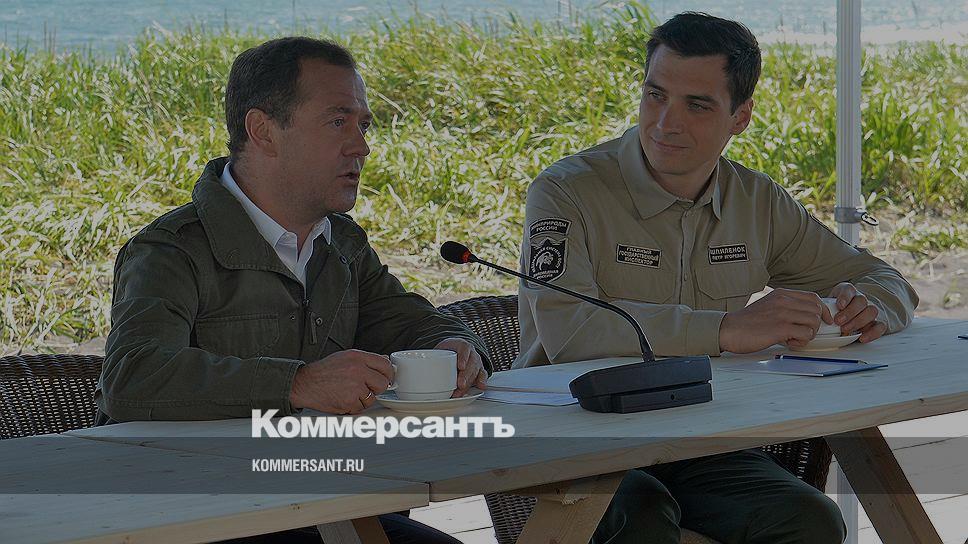 Премьер-министр России Дмитрий Медведев и директор Кроноцкого заповедника Петр Шпиленок
