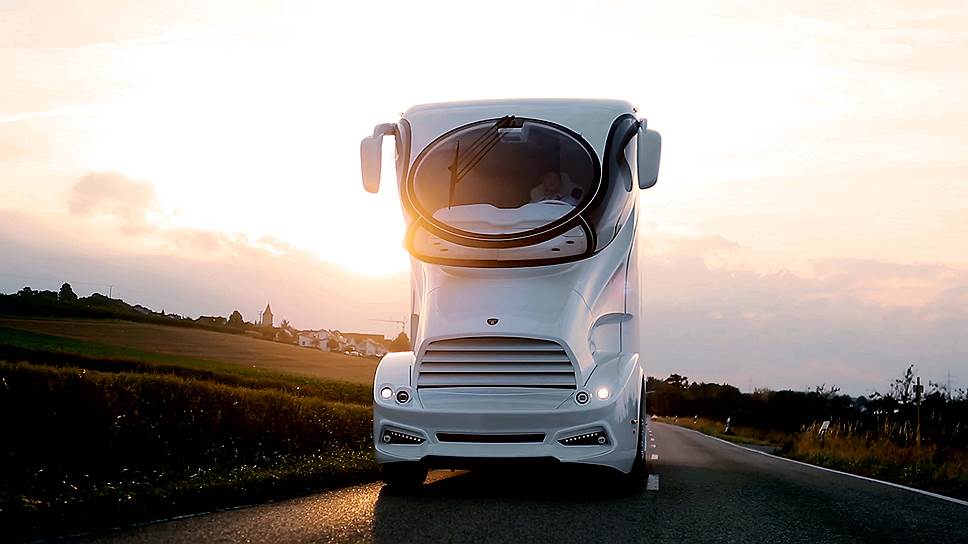 Palazzo — в переводе буквально читай "Двореццо" — это модуль с большой гостиной, кухней, круглой спальней и спа-секцией. На стоянке по сторонам кузова выдвигаются расширяющие секции, а из салона можно подняться на уровень выше в обзорный лаунж с подогреваемым полом и подъемным навесом со светодиодной подсветкой. Салон выполнен в духе яхтенного, отделан дорогими панелями и тканями, напичкан автоматикой, приводами и продвинутой аппаратурой. И это лишь базовое оснащение. Фирма заручилась поддержкой ведущих мировых поставщиков престижной продукции и готова исполнять самые разные капризы: оформление золотом или иными драгметаллами, установку каминов и так далее, вплоть до брони в стенах.