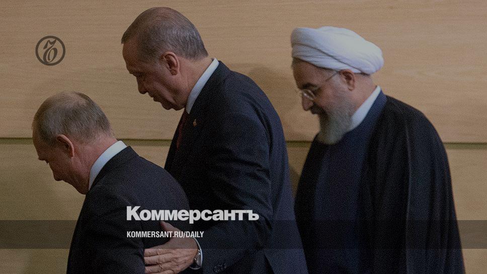 7 сентября президент России Владимир Путин прилетел в Тегеран, где встретился с коллегами, президентом Турции и президентом Ирана. Специальный корреспондент “Ъ” Андрей Колесников — о том, как в закрытой части переговоров турецкий президент горячо настаивал на немедленном перемирии в Идлибе, и о том, что сказал по этому поводу Владимир Путин.