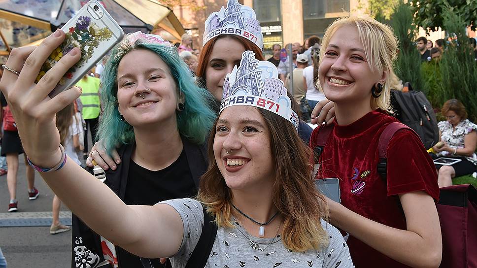 Участники праздничных мероприятий на Тверской улице