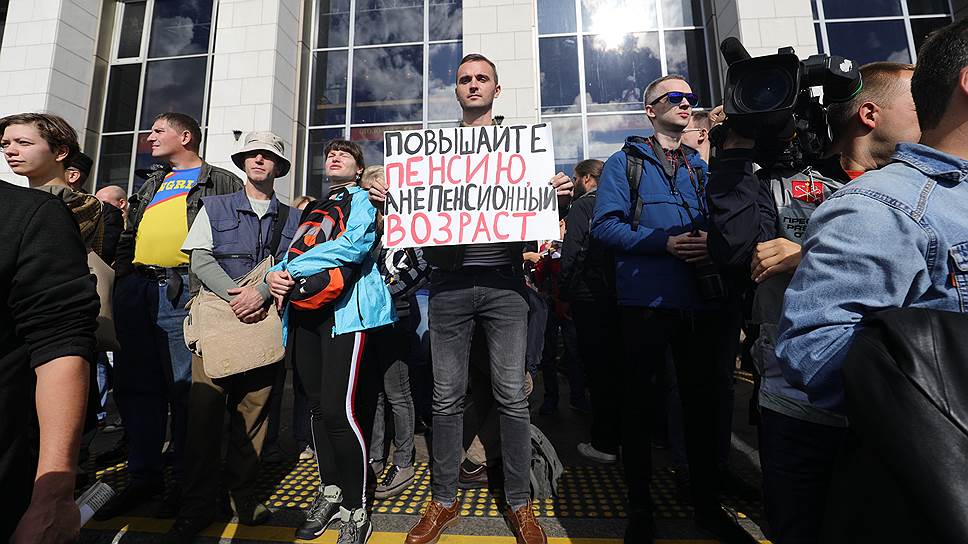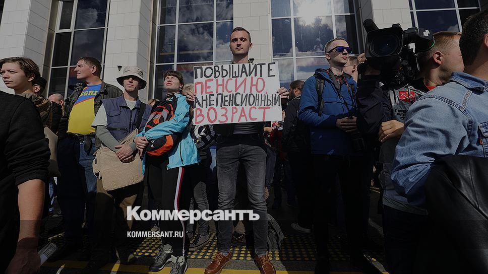 Около 500 человек вышли на несогласованную акцию против повышения пенсионного возраста в Санкт-Петербурге, сообщает «Эхо Москвы». Участники акции в 13:00 начали шествие от площади Ленина. Они планируют дойти до Свердловского сада, где проведут согласованный митинг вместе с дольщиками, передает «Фонтанка.ру». По ее оценкам, на акцию собралось около 1 тыс. человек. В числе участников — бывший глава Екатеринбурга Евгений Ройзман и экс-депутат Госдумы Дмитрий Гудков.