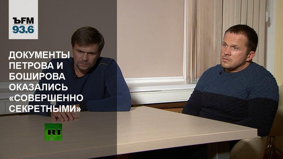 Что удалось выяснить журналистам о Петрове и Боширове с прошлого четверга? Международная расследовательская группа Bellingcat и русский The Insider утверждают: в базе ФМС, в которой находятся все паспорта, на документах у Петрова и Боширова значатся пометки «совершенно секретно». И получали россияне их в одном отделении управления миграционной службы, сообщил “Ъ-FM” шеф-редактор портала The Insider Роман Доброхотов: «Остались только первая страничка, телефонный номер, который относится к ГРУ, плюс некоторые фальшивые данные. Например, были сведения о предыдущем паспорте, там написан просто номер никогда не существовавшего паспорта. Все остальное убрали — биографию, например».