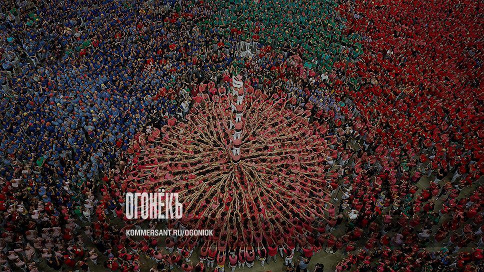 В этом году соревнования проходили в 27-й раз. Участвовали 42 команды. На фото башня команды Colla Vella dels Xiquets de Valls (она же и стала победителем, взяв еще и денежный приз 16 тысяч евро). Но чемпионы нынешнего года не самые крутые в истории: в 1998 году из людей построили башню, в которой было 10 этажей. И эта высота до сих пор больше никем не взята
