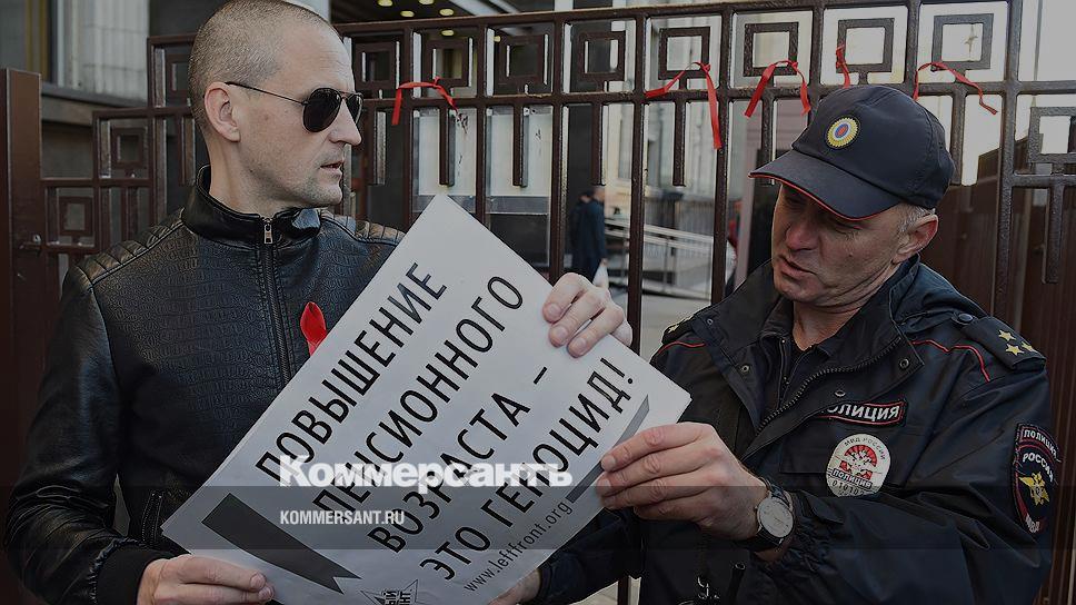 Во время голосования у здания парламента прошла акция протеста против повышения пенсионного возраста. По словам лидера «Левого фронта» Сергея Удальцова (на фото слева), на акцию собрались около 500 человек. По оценкам корреспондента “Ъ”, к Госдуме вышли около 30 человек