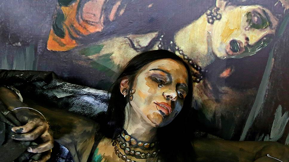 Красноярск, Россия. Модель Алена Алексейцева позирует для работы из серии «живые картины» художницы Марии Гасановой в рамках фестиваля «АРТ-Красноярск». На заднем плане — картина Виктора Васнецова «Сирин и Алконост»