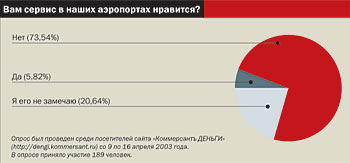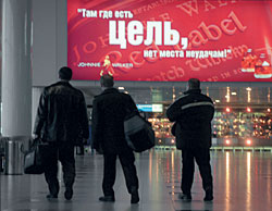 Английский актер и драматург Питер Устинов, отвечая на вопрос, не трудно ли в его возрасте работать в театре, сказал, что на сцене он по крайней мере не видит рекламы, надоевшей ему на телевидении и в аэропортах. Зарубежным аэропортам после 11 сентября приходится сетовать на двойное сокращение доходов от размещения рекламы, но все равно суммы впечатляют. По данным British Airport Association, в прошлом году зарубежные аэропорты заработали на рекламе около $9 млрд. В России доходы куда скромнее. Хотя официальных оценок нет, по некоторым подсчетам, в российские воздушные гавани в прошлом году приплыло около 20 млн рекламных долларов.
