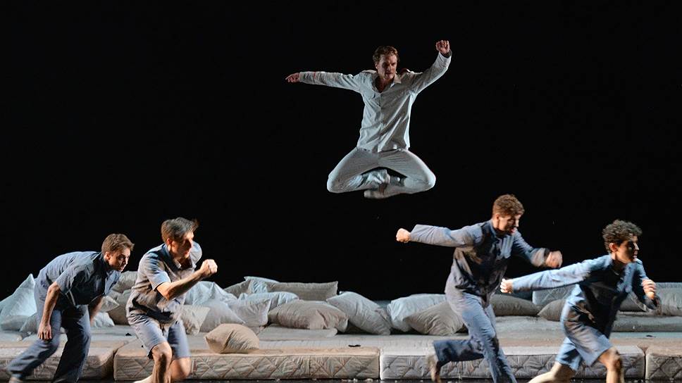 «Пижамная вечеринка», поставленная для 18 танцовщиков и одной балерины,— трагикомедия об инфантильных мужчинах, чьи игрушки с возрастом становятся все «страшнее и разрушительнее»: текст Кайдановского в буклете точно соответствует показанному на сцене. Но этот антимилитаристский спектакль принципиально лишен морализаторства и пафоса. Он намеренно инфантилен (как и его герои), умилителен и уморителен: «солдаты» воюют в детских пижамках, бомба-подушка стреляет пухом и перьями, атомный гриб вздымается огромной периной, вместо гробов носят матрасы, и даже пресловутая «красная кнопка» (художник и сценограф Каролина Хегль) выползает из оркестровой ямы как нос исполинского клоуна. В танцевальной баталии, начавшейся как праздник непослушания, едва Здравый Смысл (персонифицированный в образе жены героя) удалился за кулисы приводить себя в порядок после любовных игр с мужем, взрослые мальчишки дерутся подушками, неумело лягаются, выворачивают друг другу руки, скачут на матрасах. Никаких больших прыжков, вихревых вращений и прочих намеков на советский героический балет — Андрею Кайдановскому удалось избежать прямолинейных аллюзий. Но свою детскую войнушку он выстроил мастерски: точно просчитал нарастание агрессии, грамотно разбросал кордебалет в пространстве, расчертил сцену стремительными людскими диагоналями, линиями, шеренгами и разрядил сражения комичными сценами — каждое пантомимное явление невозмутимой жены героя с полотенцем на голове прекращает самый ожесточенный бой.