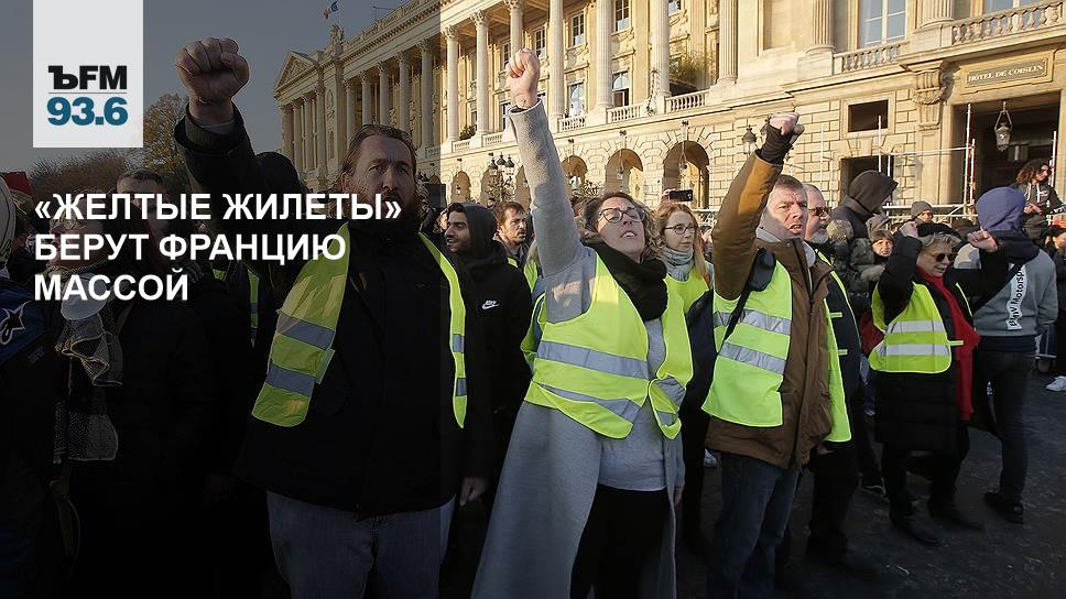 «Желтые жилеты» не сдаются: третий день подряд во Франции идут массовые акции протеста. На улицах страны сотни тысяч человек, недовольных ростом цен на бензин. В понедельник манифестанты заблокировали доступ к хранилищам нефтепродуктов. Они возвели баррикады и не пропускают к складам грузовики. Протест еще в выходные перестал быть мирным. В ходе столкновений погиб один человек. Каков выход из этой ситуации? И пойдут ли власти Франции навстречу протестующим? Об этом — Яна Лубнина и Анастасия Ройзман.