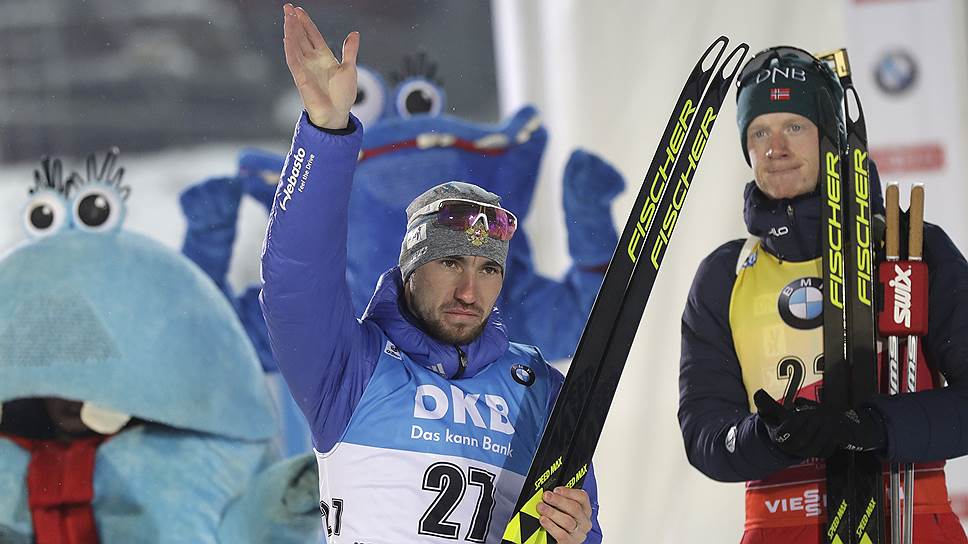 Российский биатлонист Александр Логинов (слева)