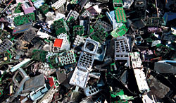 По данным комплекса городского хозяйства Москвы, жители столицы ежемесячно выбрасывают около 20 тонн мобильных телефонов. Между тем в Юго-Восточном округе столицы открылась первая промышленная линия по утилизации сломанных и устаревших сотовых телефонов. Отслужившие свой век телефоны сначала измельчают до частиц размером от 0,5 до 5 мм, затем на специальном вибрирующем столе сортируют их в зависимости от веса и других параметров. В результате каждая мобильная трубка распадается на множество компонентов. Эксперты утверждают, что из 50 тыс. выброшенных мобильников можно получить 1,5 кг золота, а из оставшихся без драгоценной начинки корпусов можно делать отличную и недорогую мебель. Проблемой переработки устаревших сотовых телефонов уже давно озаботились за рубежом. Например, австралийский оператор мобильной связи Telstra еще в 2001 году начал размещать корзины для сбора старых телефонов во всех своих магазинах.