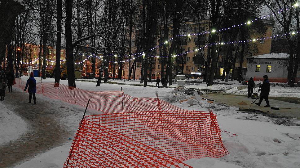 На сроках проведения ремонта сказалось то, что против проекта реконструкции выступили нижегородцы, узнавшие что в парке вырубили 54 дерева, а вместо зелени в сквере появятся гранитные стелы. Пришлось проводить дополнительные согласования и вносить корректировку в документы. Затем на две недели задержалась поставка гранитной плитки и бордюрного камня, которые везли из Украины – только там смогли найти материалы, удовлетворяющие требованиям проекта по цветовому решению. С учетом всех возникших проблем подрядчик смог приступить к работе лишь в ноябре – на два месяца позже запланированного срока.