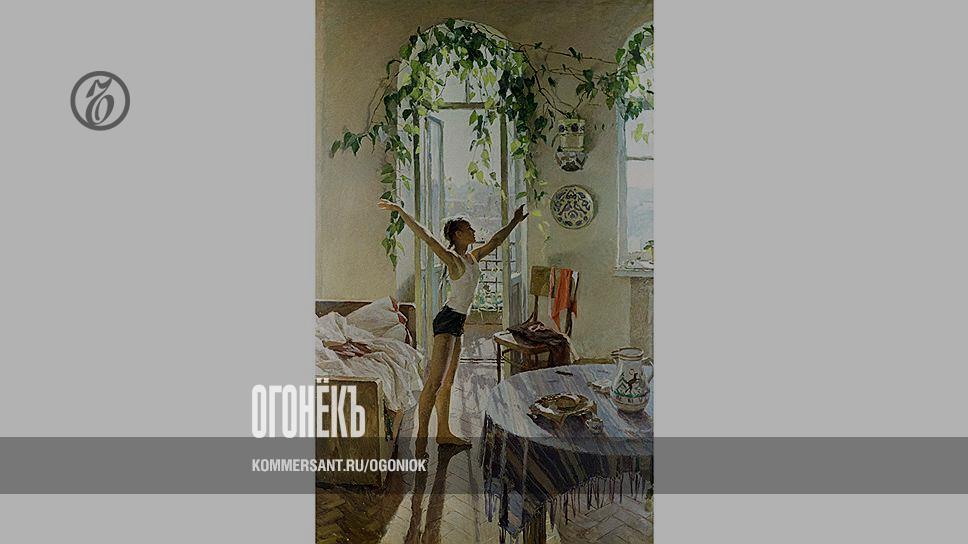 Натурщицами для картин Яблонской часто становились ее три дочери. У распахнутого балкона она изобразила свою старшую дочь Елену. Тогда ей было 13 лет. Семья только переехала в новую квартиру в Киеве. Им дали две большие комнаты в коммуналке. «Меня недавно приняли в пионеры, я просто летала,— вспоминает Елена.— Сама вскакивала поутру с первыми лучами солнца и жмурилась, ощущая, как нагрело весеннее солнце пол. Я любила заниматься гимнастикой. И вот эта поза, в которой я на картине, она не столько гимнастическая сколько балетная. Когда собираешься делать "ласточку". Такой отмах ножки назад. Мама увидела это мое утреннее настроение и придумала свою работу». Затянутые листьями верхушки окон на картине — результат еще одного увлечения юной Лены. Она очень любила растения. На балконе у нее всегда стояла рассада с цветами. Тогда она мечтала заниматься ботаникой и выйти замуж за лесника. Но мама после 7-го класса «практически силой» отправила девочку в художественное училище. У Лены обнаружился талант, и училась она в итоге с удовольствием. Тем не менее девушка изо всех сил старалась скрыть, что она дочь известной художницы.