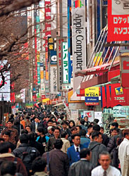 Вторым пунктом обязательной программы туриста в Японии служит электроника — то, что сделало Японию третьей или второй по размеру экономикой мира после США и Европы. То есть станция метро "Акихабара", на которой располагается Akihabara Electric Town, несколько кварталов магазинов электронных товаров. Для японцев этим летом есть несколько популярных товаров: устройства беспроводного доступа в интернет, электронные спутниковые системы для автомобиля, мобильные телефоны с какими-то непредставимыми для европейца возможностями вроде онлайнового просмотра комиксов. Вне Японии многое не работает — например, бесплатно раздаваемые на улице модемы для скоростного доступа в сеть.