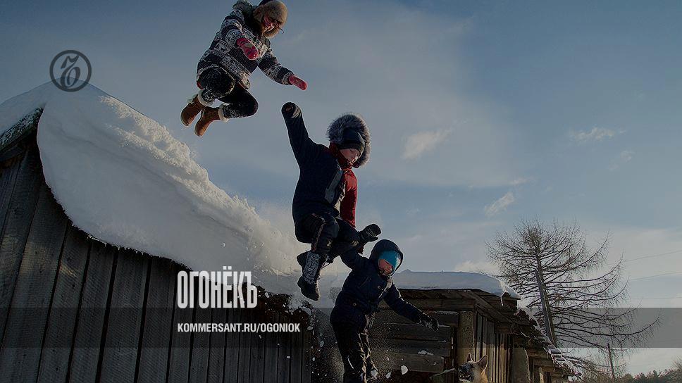 Прыжки с сарая в сугроб — популярное зимнее развлечение после школы