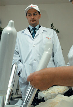 Михаил Мухин: Три года назад мы так же, как и другие, завозили фольгированные презервативы, но когда объемы закупок резко возросли, немецкие партнеры из компании CPR перестали справляться с нашими объемами и предложили, чтобы сохранить низкие цены (при наборе дополнительных смен немецких упаковщиц цена изделия резко возрастала), наладить производство в Москве. Понятно, что труд наших рабочих несравнимо дешевле. Для этого компании "Болеар" пришлось приобрести соответствующее упаковочное оборудование, потратив на него более миллиона долларов.