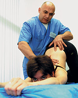Как потом оказалось, все мои советчики, включая костоправа, когда-то лечились у Бубновского, и весьма успешно. Отправиться же в его Центр кинезитерапии я решил после того, как завотделением неврологии показал мне красочный буклет корсетного ателье — долларов пятьдесят, подгоняют по фигуре,— без которого я и сумку теперь поднять не смогу. Прочие удовольствия типа игры в футбол и бутылки пива вечером вообще исключались. Инвалидом в 36 лет становиться как-то не хотелось, тем более что бедро, в которое отдавала боль из спины, по-прежнему ныло, а стопа и голень немели. И я решил обратиться, как я считал, к медицине нетрадиционной.