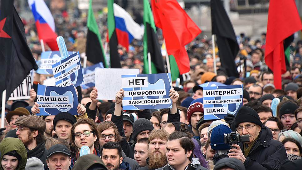 Напомним, поводом для митинга стал законопроект о создании в России инфраструктуры, «обеспечивающей работоспособность российских интернет-ресурсов в случае невозможности подключения» к зарубежным серверам. Законопроект, внесенный в конце декабря группой парламентариев во главе с сенатором Андреем Клишасом, сразу получил называние «закона о суверенном интернете». Проект раскритиковала рабочая группа «Связь и IT» экспертного совета при правительстве РФ, а также Счетная палата, однако в феврале он был принят Госдумой в первом чтении. Другим поводом стал еще один законопроект господина Клишаса — о наказании за фейковые новости и выражение «явного неуважения» к власти (принят в третьем чтении).
