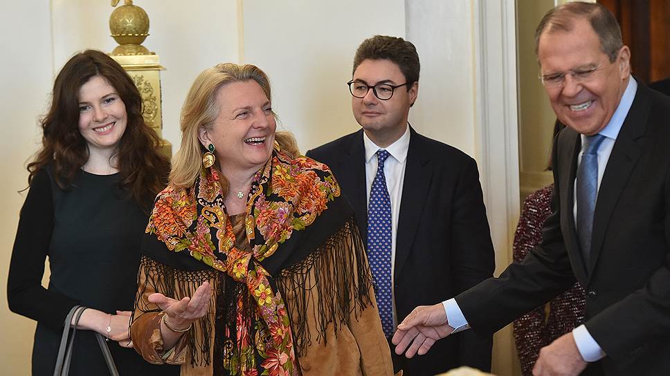 Министр иностранных дел России Сергей Лавров (справа) и министр иностранных дел Австрийской Республики Карин Кнайссль
